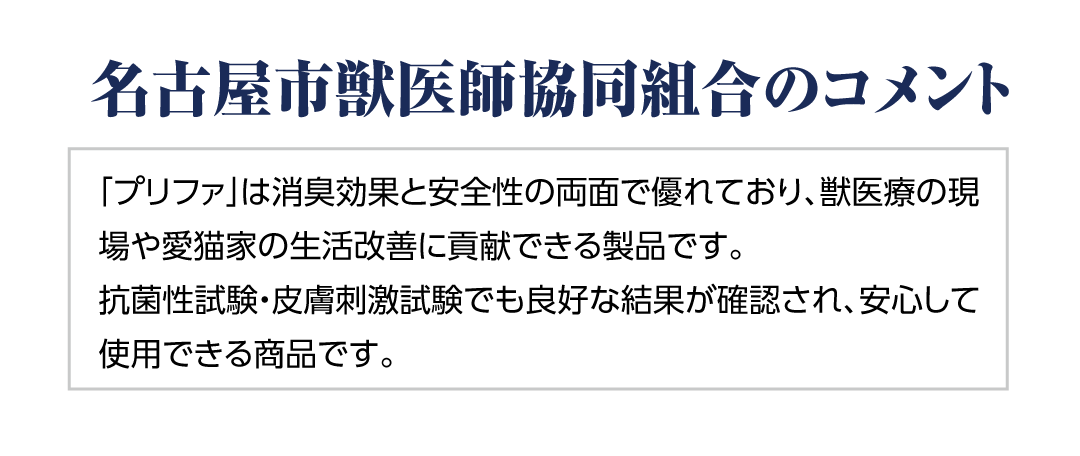 プリファは、大学の研究室と製薬会社の共同で開発した除菌成分を基に開発された、最先端の除菌システムを活用しています。また、高い安全性の皮膚刺激指数0.0。肌についても問題ありません。そして、ペットの不調に繋がるような成分は入っていないので、猫ちゃんが舐めても安心です。